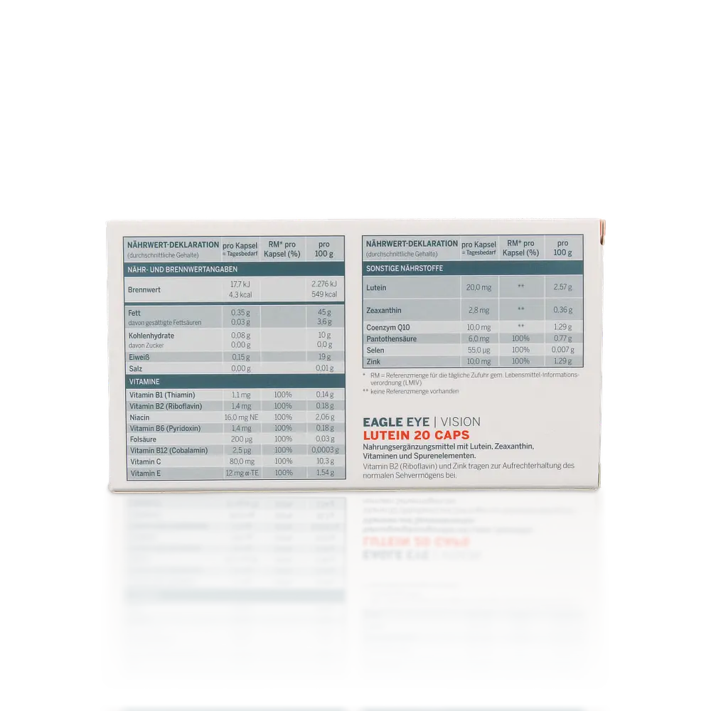 • Enthält 20 mg freies Lutein, und 1,4 mg Zeaxanthin